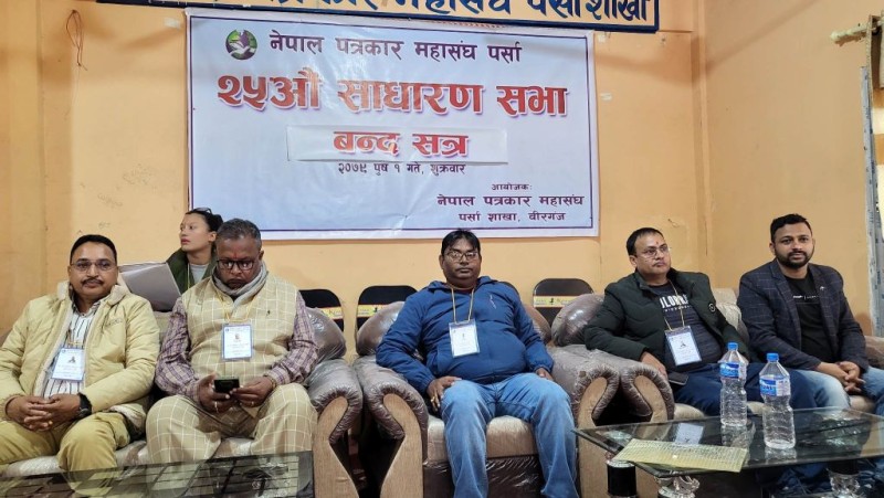 नेपाल पत्रकार महासंघ पर्साको २५ औ साधारण सभा बिभिन्न प्रास्तावहरु पारित गर्दै सम्पन्न भएको छ। । साधारण सभाले महासंघ पर्साका सचिव भूषण यादवले प्रस्तुत गरेको सांगठानीक प्रतिवेदन र कोषाध्यक्ष संजीव मिश्रले प्रस्तुत गरेको आर्थिक प्रतिवेदन सर्वसम्मत रुपमा पारित गरेको छ ।