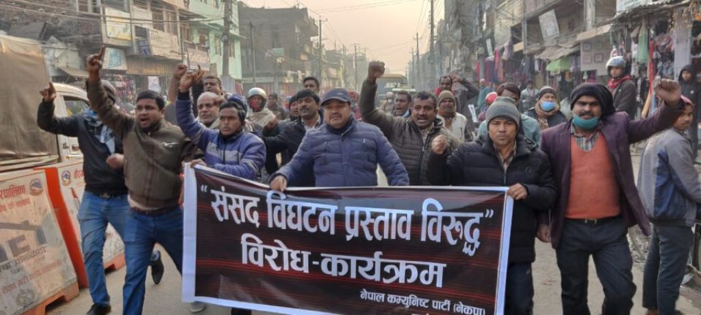 प्रतिनिधिसभा विघटन गर्ने सरकारको निर्णय बिरुद्ध बीरगंजमा सत्ताधारी दलको प्रचण्ड नेपाल पक्षले बिरोध प्रर्दशन गरेको छ ।