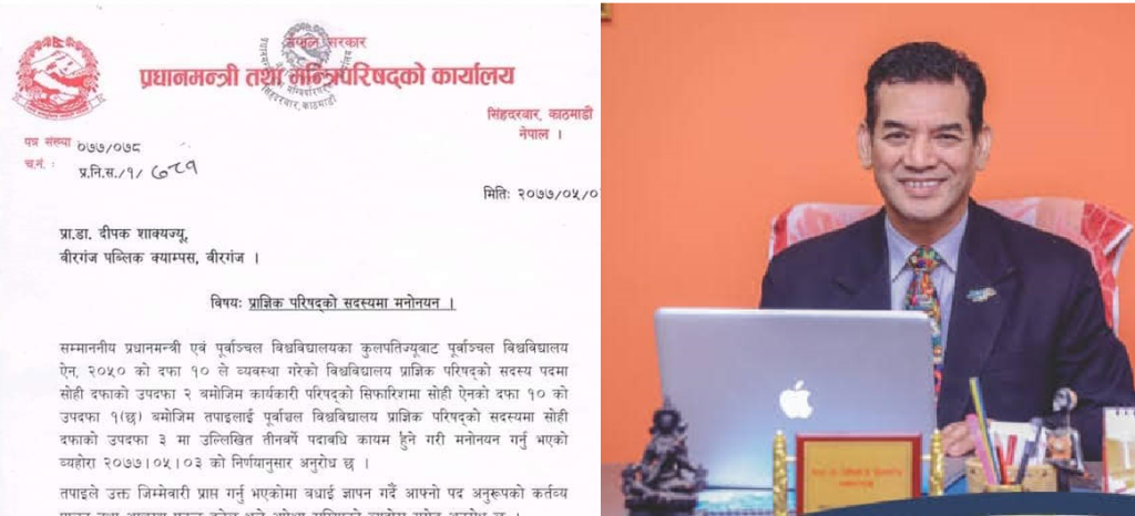 पूर्वाञ्चल विश्वविद्यालय प्राज्ञिक परिषदको सदस्यमा बीरगंजका शैक्षीक अगुवा पा्रध्यापक डा. दीपक शाक्य मनोनीत हुनु भएको छ ।