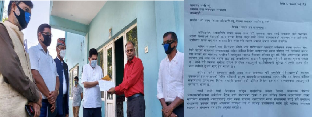 पर्सामा क्रियशिल राजनीतिक दलले बीरगंजमा छुट्टै कोभिड अस्पताल बनाउन माँग गर्दै पर्साका प्रमुख जिल्ला अधिकारी मार्फत स्वास्थ्य तथा जनसंख्या मन्त्री भानुभक्त ढकाललाई ज्ञापनपत्र बुझाएका छन्
