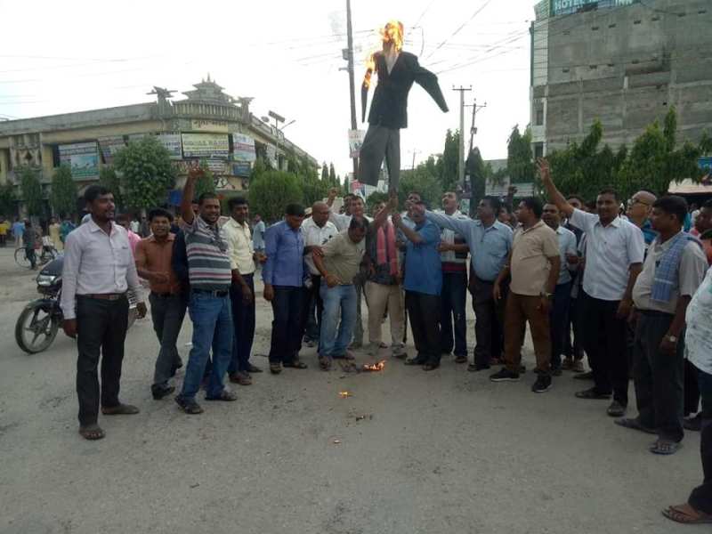 बाराको कलैयामा प्रदेश २ सरकारका उद्योग, पर्यटन, वन तथा वातावरणमन्त्री राम नरेश रायको राजिनामा माग गर्दै प्रर्दशन गरिएको छ