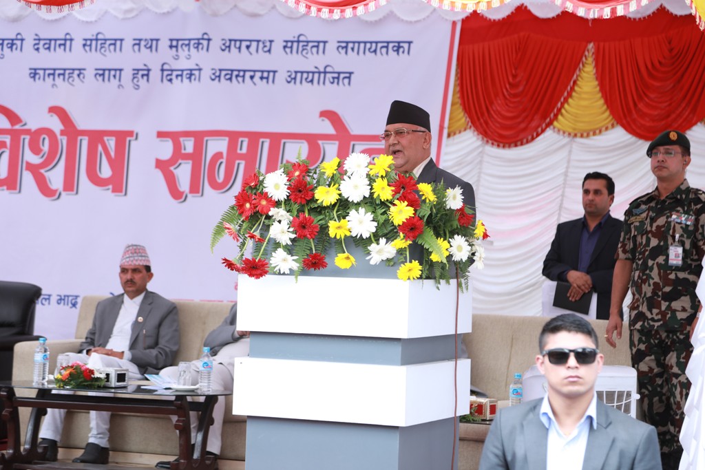 प्रधानमन्त्री केपी शर्मा ओलीले समाजमा विकसित र स्थापित मान्यतालाई व्यवस्थित गर्न मुलुकी देवानी र मुलुकी अपराध संहिता जारी गरिएको बताएका छन