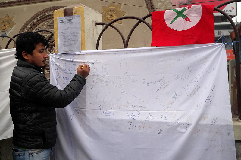 नेपाली काँग्रेस निकट नेपाल विद्यार्थी संघ पर्साले शैक्षिक मुद्दामा विभिन्न सातबुँदे माग गर्दै बिहिबारदेखि वीरगंजको घण्टाघरमा हस्ताक्षर संकलन कार्य शुरु गरेको छ ।