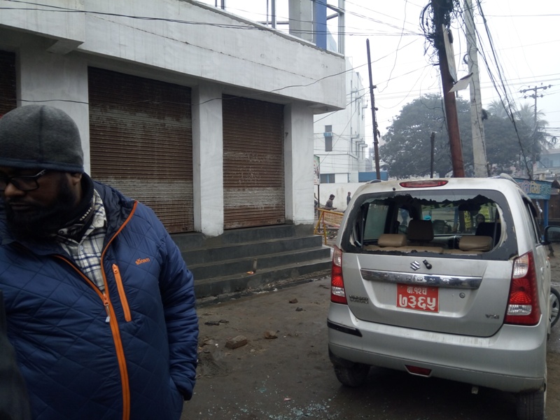 वीरगन्ज राजधानी संघर्ष समितिले आज आह्वान गरेको बन्दले जनजीवन प्रभावित भएको छ । बन्दकर्ताहरुले बिहानैदेखि वीरगन्जको विभिन्न चोक चोकमा टायर बालेर प्रदर्शन गरेका छन् । सरकारले प्रदेशको अस्थायी मुकाम जनकपुरलाई तोको विरोधमा आज वीरगन्ज बन्दको आह्वान गरेको हो । यस्तै बन्दकर्ताहरुले बिहिबार बिहान दुईवटा गाडीमा समेत तोडफोड गरेका छन् । वीरगन्जको घण्टाघरमा बा १२ च ७३६५ सुजुकी कार र र ना ४ च ८०३१ नम्बर नम्बरको टाटा सूमो बन्दकर्ताहरुले तोडफोड गरेका हुन् ।