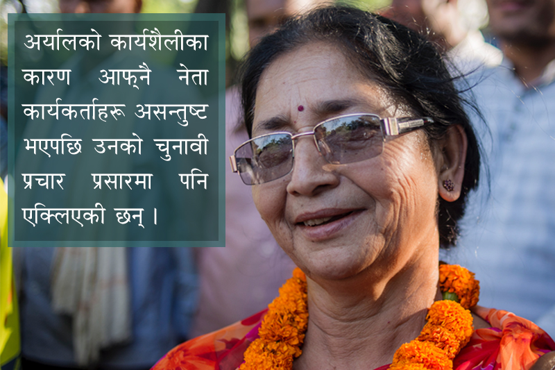 पर्सा क्षेत्र नम्बर–४ बाट बाम गठबन्धनबाट उम्मेदवार बनेकी उर्मिला अर्याललाई आफ्नै कार्यकर्ताहरुबाट सकस हुने देखिएको छ । २०७० सालको संविधान सभाको निर्वाचन अघि एमालेबाट माओवादीमा प्रवेस गरेकी अर्याल जिल्लामा एकलौटी ढंगबाट चल्न थालेपछि नै शुरु भएको विवाद स्थानीय तह निर्वाचन हुदै प्रतिनिधिसभा र प्रदेश सभा निर्वाचन सम्म पनि भित्री रुपमा मिल्न सकेको छैन ।