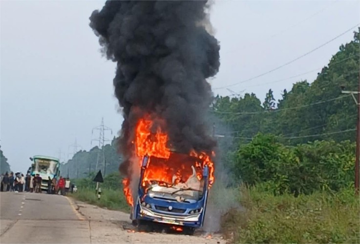 चन्द्रपुर। आज बिहान पूर्व–पश्चिम राजमार्ग अन्तर्गत चन्द्रपुर नगरपालिका–४ लच्का नजिकै काठमाडौँबाट चन्द्रनिगाहपुर आउँदै गरेको प्र.२–०३–००१ ख ५५५५ नम्बरको यात्रुबाहक बसमा अचानक आगलागी भएको छ।