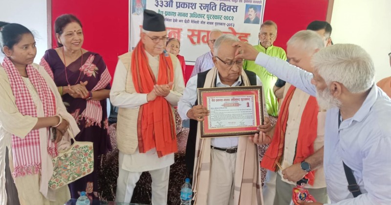 ललितपुर । अनौपचारिक क्षेत्र सेवा केन्द्र इन्सेकका संस्थापक महासचिव स्वर्गीय प्रकाश काफ्लेको ३३औँ स्मृति दिवसका अवसरमा ‘प्रकाश मानवअधिकार पुरस्कार’ बारा जिल्लावासी सामाजिक अभियानकर्मी सुनिलकुमार यादवलाई प्रदान गरिएको छ ।