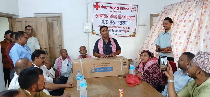 वीरगंज । वीरगंज महानगरपालिका वडा नं ३ का वडाध्यक्ष बैजु स्वर्णकारले रेडक्रस सोसाईटी पर्सा द्वारा संचालित रक्तसंचार केन्द्रलाई एक थान एसी उपलब्ध गराएका छन ।