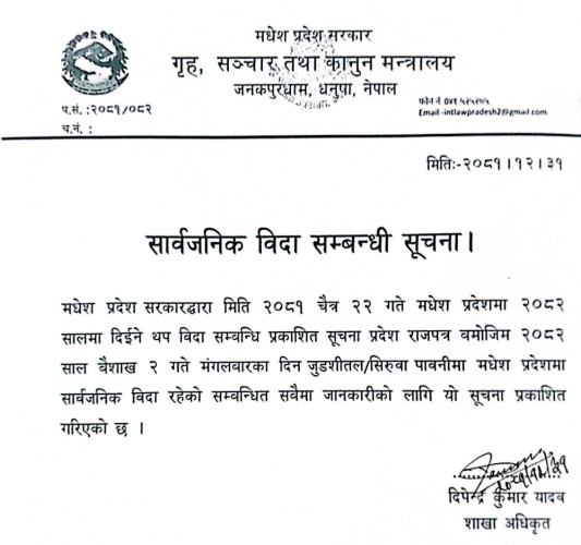 वीरगंज । मधेश प्रदेशका मुख्यमन्त्री सतिश कुमार सिंहले घरेलुतथा साना उधोग कार्यालय लाहानका कर्मचारीलाई कारवाही गर्ने भएका छन ।