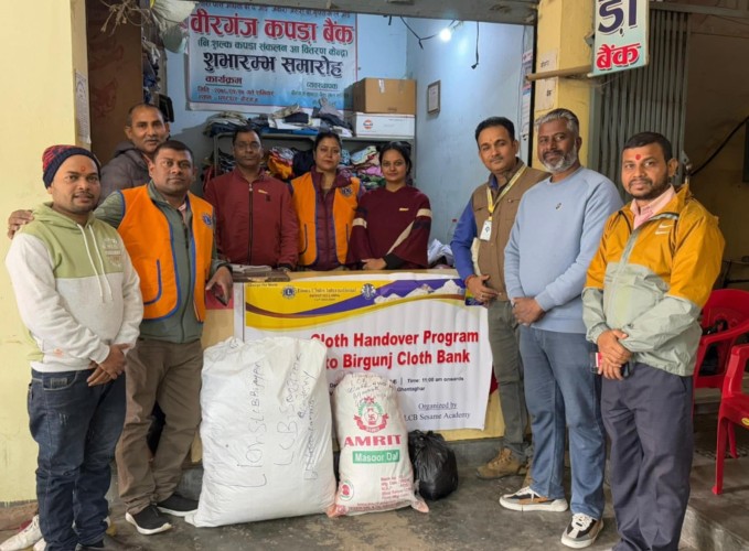 वीरगञ्ज । लायन्स क्लब अफ वीरगञ्ज सेस्मी एकेडेमी, विजयपथ र ग्रीन क्याम्पसले आइतबार वीरगञ्ज कपडा बैङ्कलाई कपडा सहयोग गरेको छ ।
