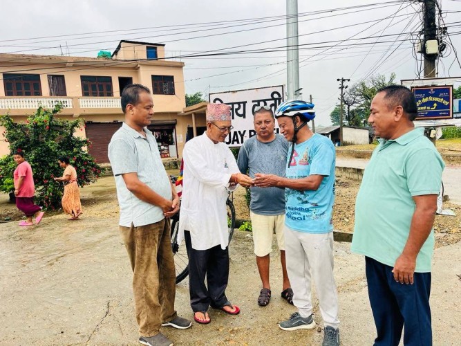 बीरगंज । विश्व साईकल यात्री रामचन्द्र महर्जनलाइ ठोरी गाउँपालिकाको वडा नं ४ बिजयबस्तीका बासिन्दाले स्वागत गरेका छन ।