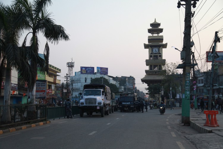 वीरगन्ज। स्थानीय पशासनले कर्फ्यू आदेश जारी गरेपछि वीरगंजको सुरक्षा व्यवस्था कडा बनाइएको छ । जिल्ला प्रशासन कार्यालय पर्साले साँझ ५ बजेपछि महानगरपालिकाका विभिन्न स्थानहरुमा कर्फ्यू आदेश जारी गरेको छ ।