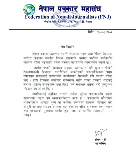 राजबिराज । पत्रकारमाथि हातपात गर्ने जनमत पार्टीका दुई जना कार्यकर्तालाई सप्तरी प्रहरीले विहिवार साँझ गिरफ्तार गरेको छ ।