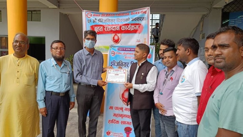 बीरगंज । इन्जिनियर्स दिवस २०८० को उपलक्ष्यमा नेपाल इन्जिनियर्स एसोसिएसन, वीरगन्ज केन्द्रद्वारा वृहत रक्त दान कार्यक्रम सम्पन्न भएको छ ।