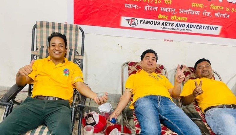 वीरगञ्ज । वीरगंजमा युवा समाजलेआयोजना गरेको रक्रदानमा २४ जना महिला सहित १ सय १९ जनाले रक्तदान गरेका छन । समाजले होटेल मकालुमा रक्तदान कार्यक्रमको आयोजना गरेको थियो । रक्तदान कार्यक्रम समाजका अध्यक्ष संजीव थापाको अध्यक्षतामा भएको थियो ।