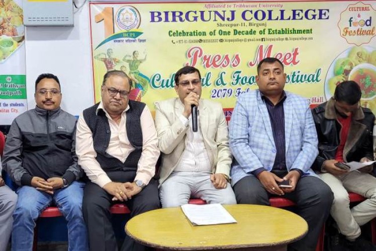 वीरगन्ज, । फागुन १२ र १३ गते वीरगन्जमा रात्री सांस्कृतिक तथा खाना महोत्सव लाग्ने भएको छ ।वीरगंज कलेजले आफ्नो स्थापनाको दसौं वर्षको उपलक्ष्यमा कलेजले रात्री सांस्कृतिक तथा खाना महोत्सवको आयोजना गरेको हो ।