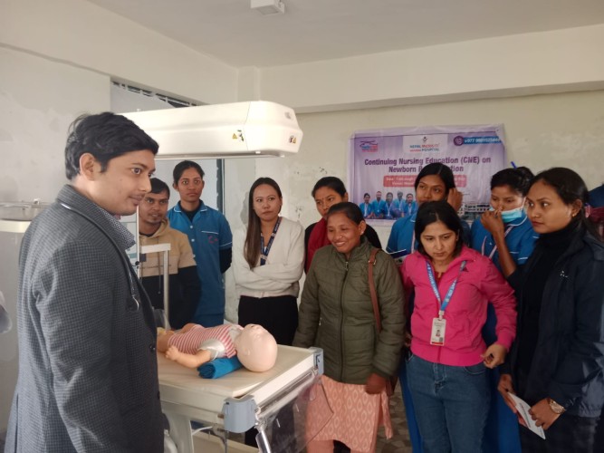 वीरगंज /नेपाल नर्सिङ्ग दिवसको उपलक्ष्यमा नर्सहरुलाई नवजात शिशुको उपचार तालीम नेपाल नर्सिङ्ग दिवसको उपलक्ष्यमा वीरगंजका करिब ४० जना नर्सहरु नवजात शिशुको पूर्नजीवन तालीममा सहभागी भए ।