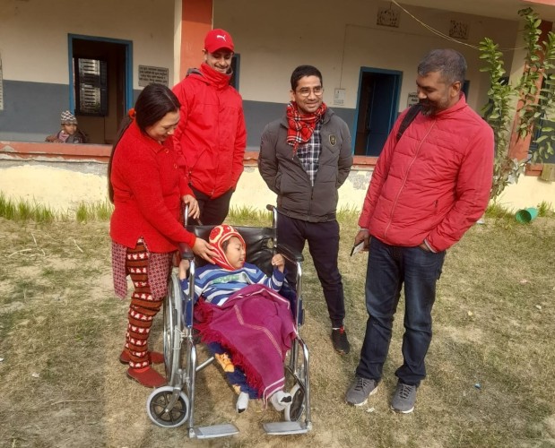 आशा किरण केन्द्रमा रहेकी १४ वर्षीय सफ्रीन थापालाइ युवानेता अरबिन्द सिह र अमरेस रायद्वारा १ थान व्हीलचेयर प्रदान गरिएको छ ।