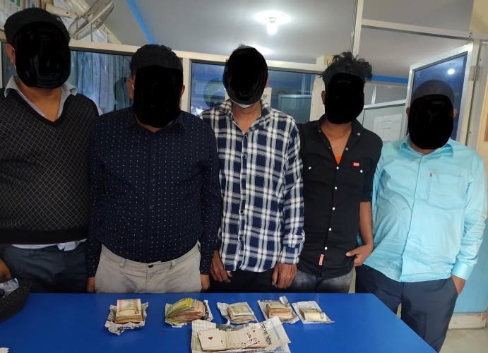 फलास खेलीरहेका ५ जना जुवाडेलाई प्रहरीले पक्राउ गरेको छ । जुवाको खालबाट प्रहरीले एक सेट ताससहित ९३ हजार १ सय ५० रुपैयाँ नगद बरामद गरेको छ ।