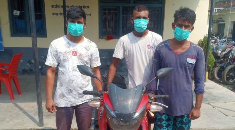 मोटरसाइकल चोरीमा संलग्नरहेको आरोपमा तीन जनालाई वीरगञ्जबाट चोरीको मोटरसाइकलसहित प्रहरीले पक्राउ गरेको छ।