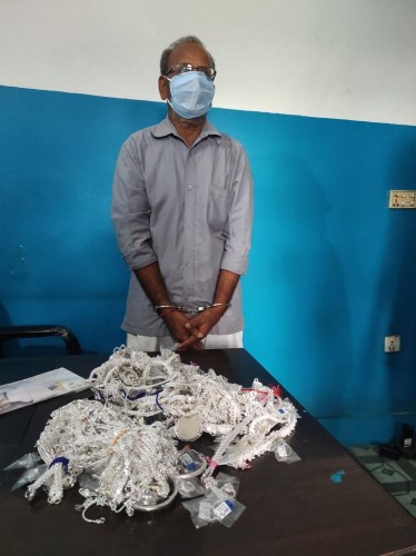 ६ किलो चाँदी सहित पक्राउ ६० वर्षिय नागेन्द्र साह सोनारलाई जिल्ला प्रहरी कार्यालय पर्साले आवश्यक कारवाहीकोलागि राजश्व अनुसन्धान कार्यालय पथलैया, बारामा बुझाएको छ ।