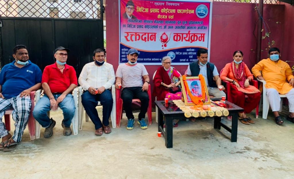 जी.पी कोईरनला फाउण्डेशन पर्साले नेपाल पूर्व प्रधानमन्त्रि तथा नेपाली काग्रेसका पुर्व सभापति स्व. गिरिजा प्रसाद कोईरालाको ९८ औं जन्म जयन्तिको अवसरमा आज रक्तदान कार्यक्रम सम्पन्न गरेको छ ।