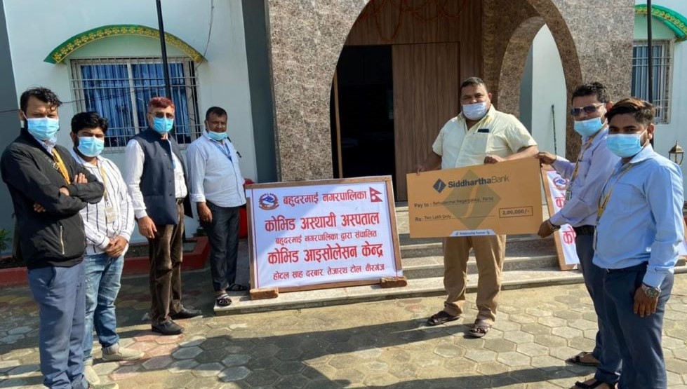 सिद्धार्थ बैंक लिमिटेड बहुदरमाई शाखाले बहुदरमाई नगरपालिकालाई दुई लाख रुपैया सहयोग प्रदान गरेको छ ।