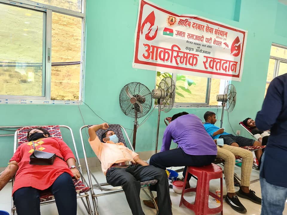 साहिब दरबार सेवा संस्थान र जनता समाजवादी पार्टी नेपाल बीरगंज महानगर कार्य समितिको संयुक्त आयोजनामा रक्तदान कार्यक्रम भएको छ ।