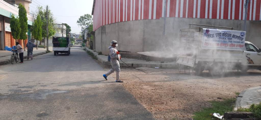 बीरगंज महानगरपालिकाले बीरगंज महानगरलाई डिस्इन्फेक्टेड राख्नकालागि स्यानीटाइजर छर्नेकामलाई निरन्तरता दिइरहेको छ