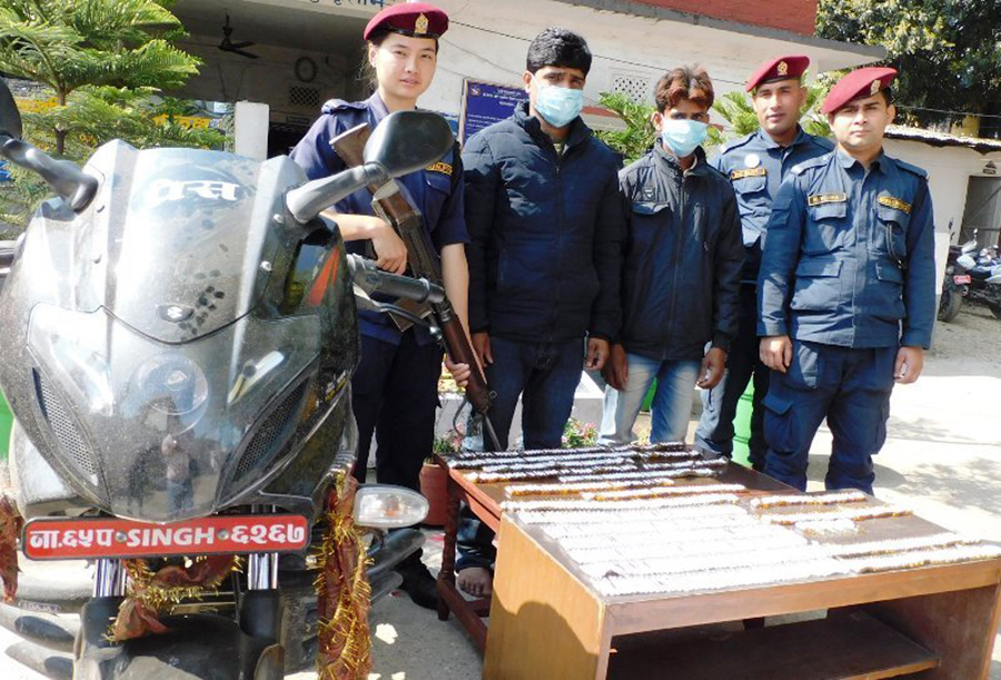 प्रेस लेखेको मोटरसाइकलबाट लागू औषधीको तस्करी गर्दै आइरहेका बीरगंज महानगरपालिका वडा नं १५ बस्ने ३० वर्षिय जीतेन्द्र सिंहलाई बारा प्रहरीले पक्राउ गरेको छ
