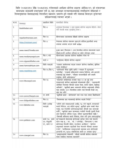 ७ चैत, काठमाडौँ । प्रेस काउन्सिल नेपालले कोरोनाबारे गलत समाचार सम्प्रेषण गरेर भ्रम छर्ने १४ वटा अनलाइन मिडिया बन्द गराएको छ
