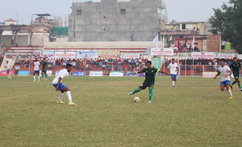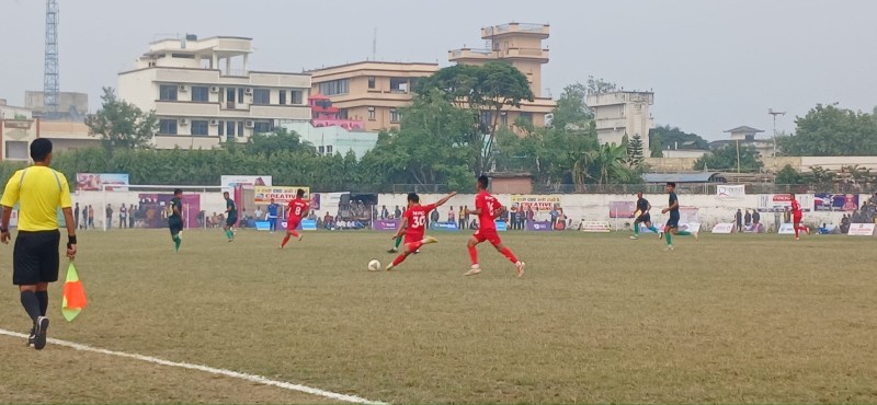 कार्तिक । बिजय दशमीको अवसर पारेर समाजसेवी स्व. राम ब. श्रेष्ठको स्मृतिमा पर्साको बिजयबस्तीमा जारी तेस्रो ठोरी गोल्डकप २०८० मा शुक्रवारको दोस्रो सेमिफाइनल खेल बीरगंज युनाइटेड क्लब बीरगंज र हेटौंडा फुटबल एकेडेमी हेटौंडा बीच सम्पन्न भएको छ ।