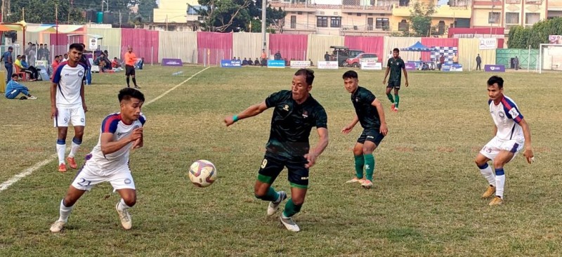 वीरगञ्ज । त्रिभुवन आर्मी क्लब बीरगंजमा जारी वीरगञ्ज गोल्डकप फुटबल प्रतियोगिताको सेमीफाइनलमा प्रवेशगरेको छ ।